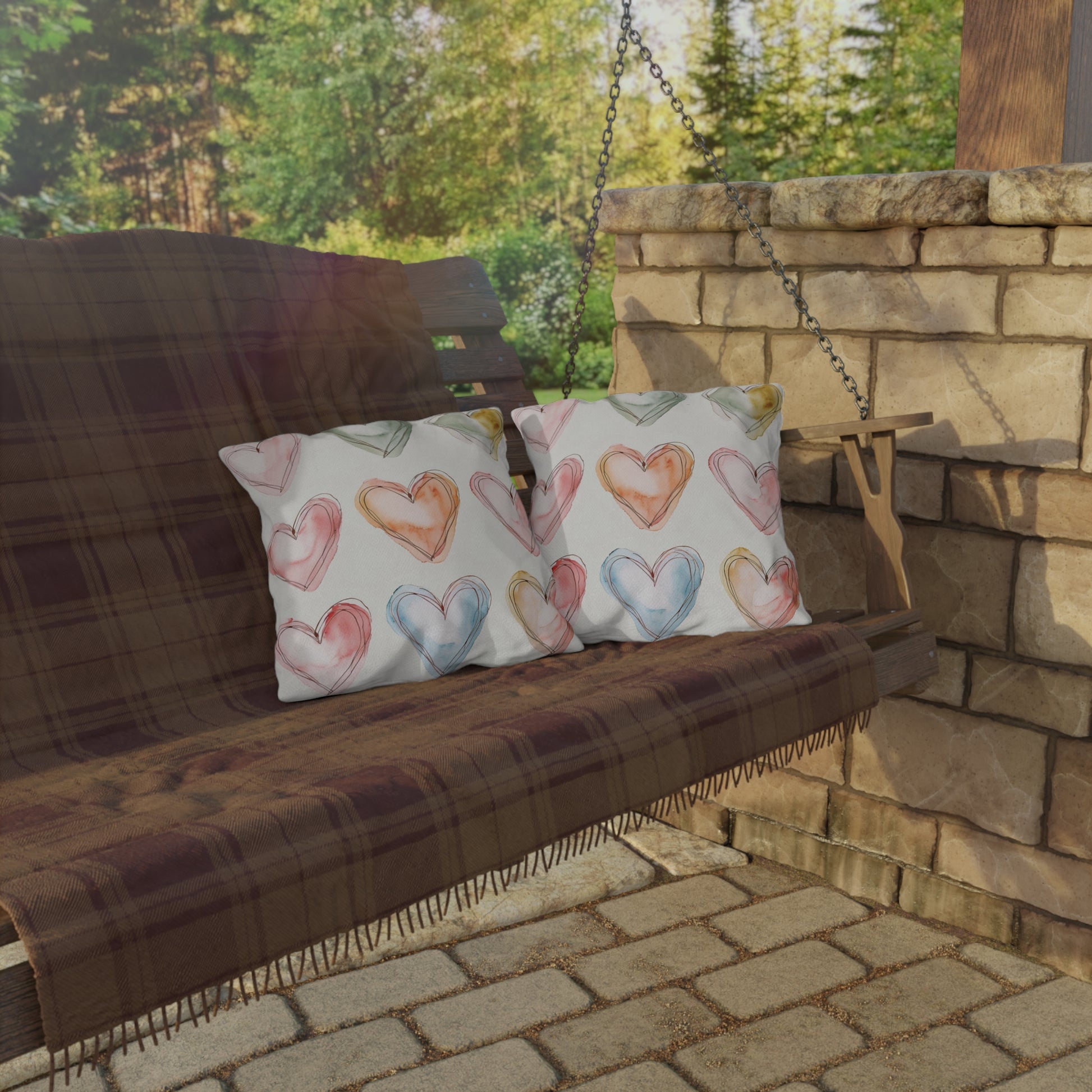 Enhance your outdoor spaces with these vibrant outdoor pillows. Crafted with a cheerful heart design, they are perfect for adding a splash of color to your patio or garden. Designed to inspire relaxation and joy, these pillows invite you to unwind surrounded by nature. They are a perfect fit for anyone who loves entertaining outdoors or simply cherishing quiet moments in their backyard. Great for seasonal gatherings such as summer barbecues, outdoor movie nights, or cozy fall evenings by the fire. These pillows also make thoughtful gifts for housewarming celebrations, birthdays, and holidays like Valentine’s Day and Mother’s Day.